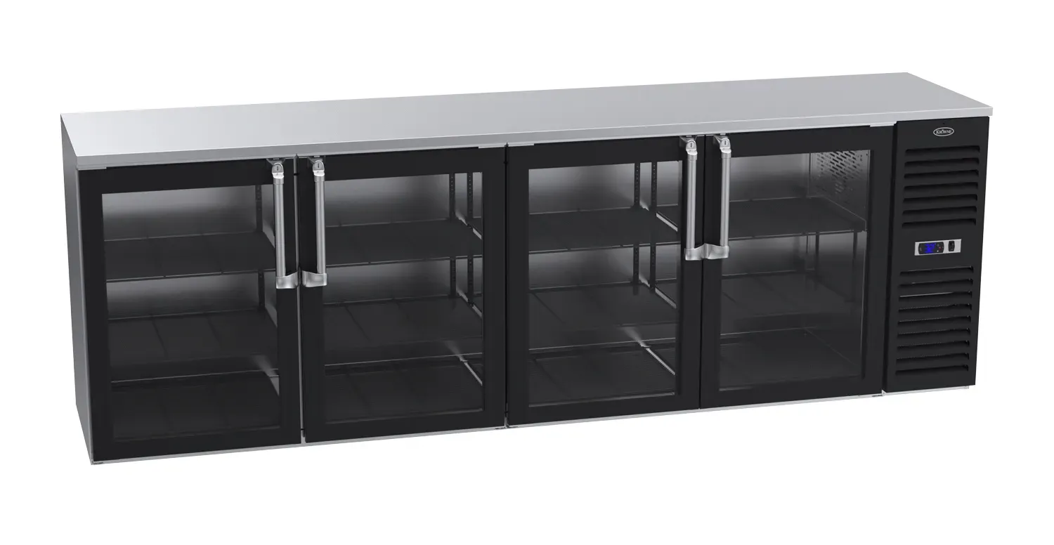 Unleash culinary creativity with the Krowne Metal BS108R-GSS-LRLR Refrigeration- Self-Contained Back Bar Cooler. This top-of-the-line cooler is designed to meet the demands of a busy commercial restaurant. With its spacious 108" size, it provides ample storage space for all your beverages. The right cabinet features glass doors, allowing you to showcase your selection to customers, while the left and right doors and top provide easy access to your inventory. The self-contained design ensures efficient cooling without the need for additional equipment. Made by Krowne Metal, a trusted name in the industry, this back bar cooler is built to last. Whether you're running a bar, restaurant, or catering service, this cooler is a must-have for keeping your drinks chilled and easily accessible. Invest in the Krowne Metal BS108R-GSS-LRLR and elevate your beverage service to the next level.