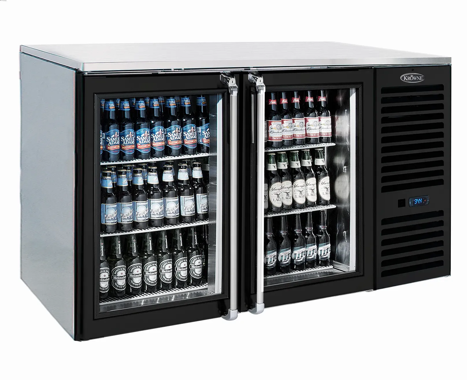 Cook with confidence with the Krowne Metal BS60L-KSS-RR Back Bar Refrigeration. This Royal Series 60" Self-Contained Two-Door Back Bar Cooler is the perfect addition to any commercial restaurant. With its sleek design featuring glass and stainless steel doors, top, and sides, this back bar cooler not only looks stylish but also ensures durability and longevity. The self-contained feature means that it is easy to install and requires minimal maintenance, allowing you to focus on serving your customers. The spacious 60" size provides ample storage space for your beverages, keeping them chilled and ready to serve. Whether you're running a busy bar or a bustling restaurant, this back bar cooler from Krowne Metal is designed to meet the demands of a commercial setting. Invest in this reliable and efficient refrigeration solution to keep your drinks cool and your customers satisfied.