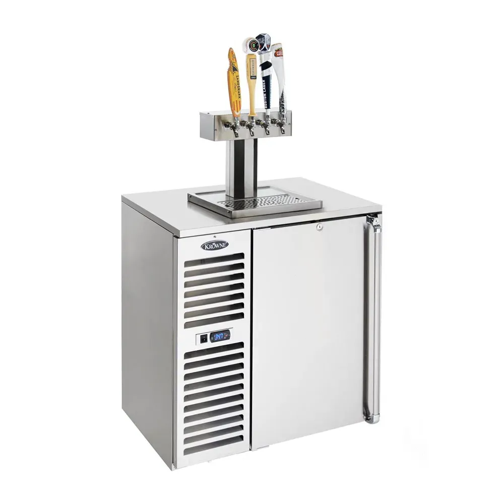 Introducing the Krowne Metal, DB36L-BSS-R, Draft Beer Cooler - the perfect addition to drive restaurant profitability. This self-contained one-door draft beer cooler from the Royal Series is designed to meet the needs of commercial restaurants. With its 36" width and 24" depth, it offers ample space for storing and cooling your draft beer selection. The side-mounted self-contained refrigeration ensures optimal temperature control, ranging from 30F to 40F, keeping your beer perfectly chilled and ready to serve. The stainless steel draft beer tower features a faucet and a drain pan, providing convenience and easy maintenance. The hinged door with a lock ensures the security of your valuable inventory. The digital thermostat allows for precise temperature adjustments, while the stainless steel floor rack provides sturdy support. With its durable construction and ETL certification, this draft beer cooler is built to last in a demanding restaurant environment. Trust Krowne Metal to deliver exceptional quality and performance for your commercial restaurant needs.