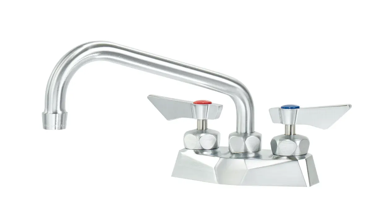 Enhance the heart of your restaurant with the Krowne Metal, DX-308, Plumbing. This diamond series 4" center deck mount faucet with an 8" spout is the perfect addition to any commercial restaurant. Designed by Krowne Metal, a trusted vendor in the plumbing industry, this faucet is built to last and withstand the demands of a busy kitchen. The DX-308 comes with mounting hardware included, making installation a breeze. With its sleek design and durable construction, this faucet not only adds a touch of elegance to your restaurant's decor but also ensures reliable performance. The 8" spout provides ample reach, allowing for easy filling of pots and pans. Whether you're washing dishes or filling up water containers, the Krowne Metal, DX-308, Plumbing is the ideal choice for any commercial kitchen.