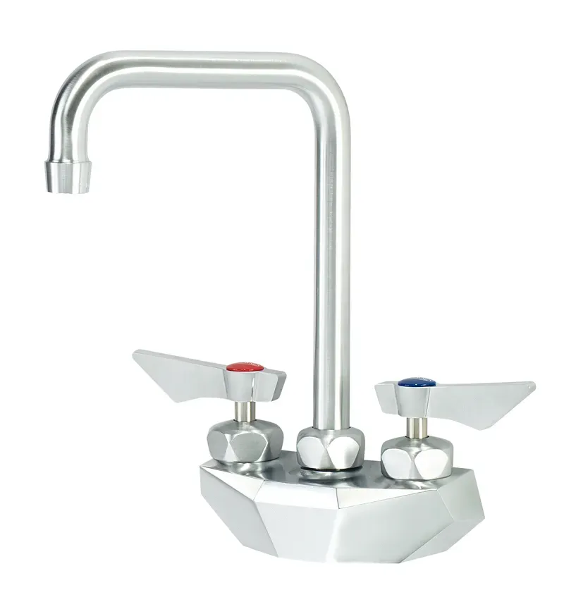 Ignite culinary passion with the Krowne Metal DX-401 Plumbing. This top-of-the-line faucet is a must-have for any commercial restaurant. With its sleek design and durable construction, it is built to withstand the demands of a busy kitchen. The 4" center wall mount faucet features a 6" double bend gooseneck, providing ample space for filling pots and pans. The included mounting hardware ensures easy installation, saving you time and effort. Designed by Krowne Metal, a trusted name in the industry, this faucet is guaranteed to deliver exceptional performance and reliability. Whether you're running a bustling restaurant or a small cafe, the Krowne Metal DX-401 Plumbing is the perfect addition to your kitchen. Upgrade your workspace with this high-quality faucet and experience the difference it makes in your daily operations.
