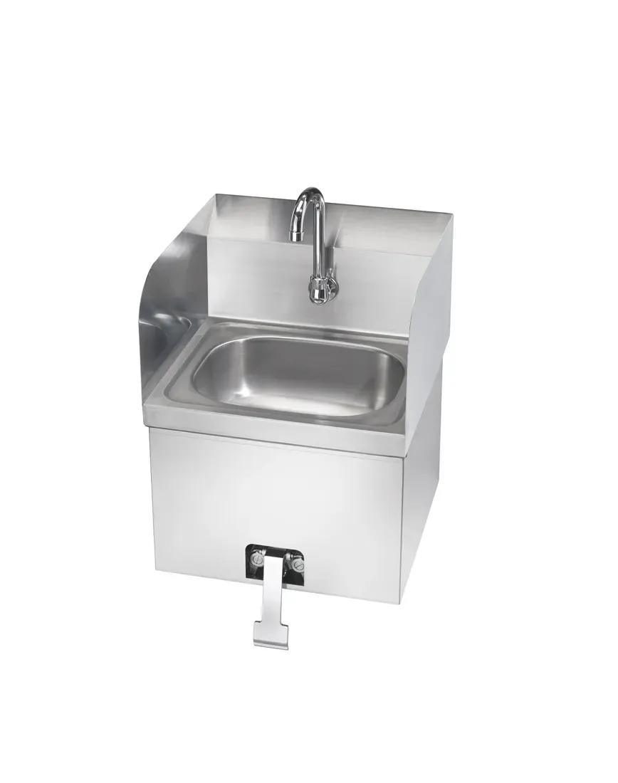 Introducing the Krowne Metal HS-41 Hand Sink, designed to simplify restaurant operations. This 16" wide hand sink with side splashes and a knee valve is a must-have for any commercial restaurant. With its compact size and convenient features, this hand sink is perfect for busy kitchens. The knee valve allows for hands-free operation, promoting hygiene and efficiency. The side splashes help contain water and prevent spills, keeping your workspace clean and safe. Made by Krowne Metal, a trusted vendor in the industry, this hand sink is built to last. Whether you're running a small cafe or a bustling restaurant, the Krowne Metal HS-41 Hand Sink is an essential addition to your kitchen. Simplify your restaurant operations and ensure the highest standards of cleanliness with this reliable hand sink.