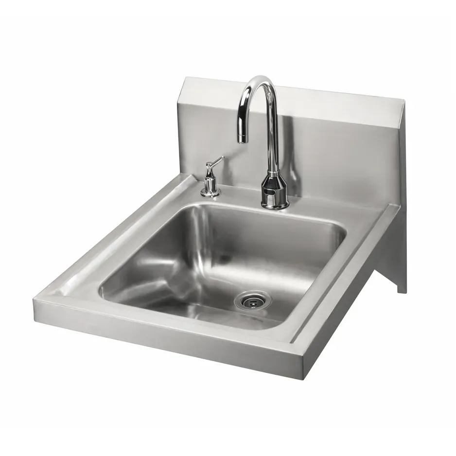 Upgrade your restaurant kitchen with the Krowne Metal HS-51 Hand Sink. This ADA compliant hand sink is designed to meet the needs of a busy commercial restaurant. With a single hole and deck mount, it offers convenience and versatility. The 4-1/2" gooseneck electronic faucet provides easy access to water, making handwashing a breeze for your staff. This hand sink is perfect for any commercial kitchen, offering a hygienic and efficient solution for handwashing. With its sleek design and practical features, it is a must-have for any restaurant looking to upgrade their facilities. Don't miss out on this essential addition to your kitchen.