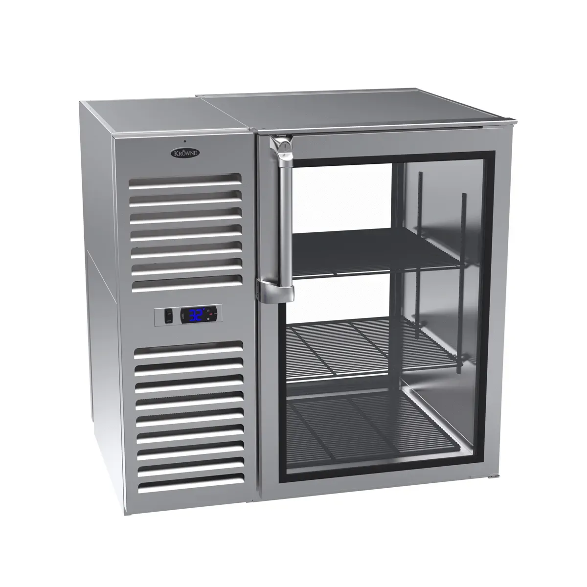 Cook with confidence with the Krowne Metal KPT36L-KNS-R/L Backbar Cooler. This commercial-grade cooler is designed to meet the needs of busy restaurants, ensuring easy access from front to back with doors on both sides. With a height of 35" without the top and 36" with the optional 1" top, this cooler provides ample space for storing beverages and ingredients. The stainless steel construction and coved corner interior with LED lighting not only make it easy to clean but also add a touch of elegance to any restaurant setting. The digital thermostat and high-performance refrigeration system maintain an operating range of 30 -40 F, keeping your items perfectly chilled. The NSF epoxy-coated durable shelves, along with the pre-drilled bottom for optional legs or casters, offer flexibility and convenience. Plus, with the choice of door styles and finishes, you can customize the cooler to suit your restaurant's aesthetic. Trust Krowne Metal for reliable and efficient refrigeration solutions.