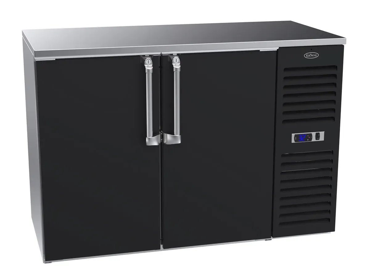 Cook with confidence with the Krowne Metal KPT52L-BSS-LR/LR Backbar Cooler. This commercial-grade cooler is designed to meet the needs of busy restaurants, with doors on both sides for easy access from the front and back. The heavy-duty self-closing 24"W doors feature stainless steel handles with built-in locks, ensuring the security of your valuable inventory. The built-in cool white LED lighting illuminates the interior, making it easy to find what you need. With a digital thermostat and DynamicChill 360 Technology, you can trust that your beverages will be kept at the perfect temperature. The heated mullion minimizes condensation, keeping your drinks looking and tasting their best. This backbar cooler is approved for NSF 7 open food storage and features NSF epoxy coated durable shelves, providing ample space for your drinks. The pre-drilled bottom allows for optional legs or casters, giving you flexibility in placement. Plus, with eco-friendly refrigerant and insulation, you can feel good about your choice. Upgrade your restaurant's beverage storage with the Krowne Metal KPT52L-BSS-LR/LR Backbar Cooler.