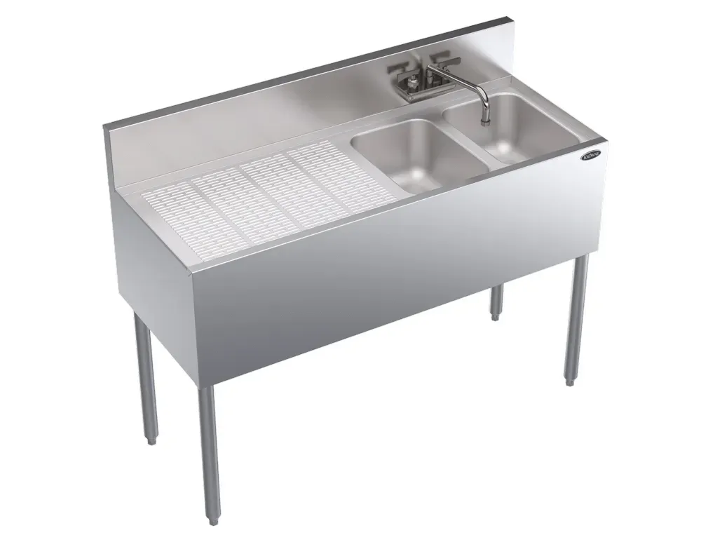 Enhance your commercial kitchen with the Krowne Metal KR19-42R Bar Sink. This Royal Series sink is designed to meet the demands of a busy restaurant environment. With its two-compartment design and a 24" drainboard on the left, this sink provides ample space for washing and drying dishes, utensils, and glassware. The 48" width and 19" depth ensure that you have plenty of room to work efficiently.