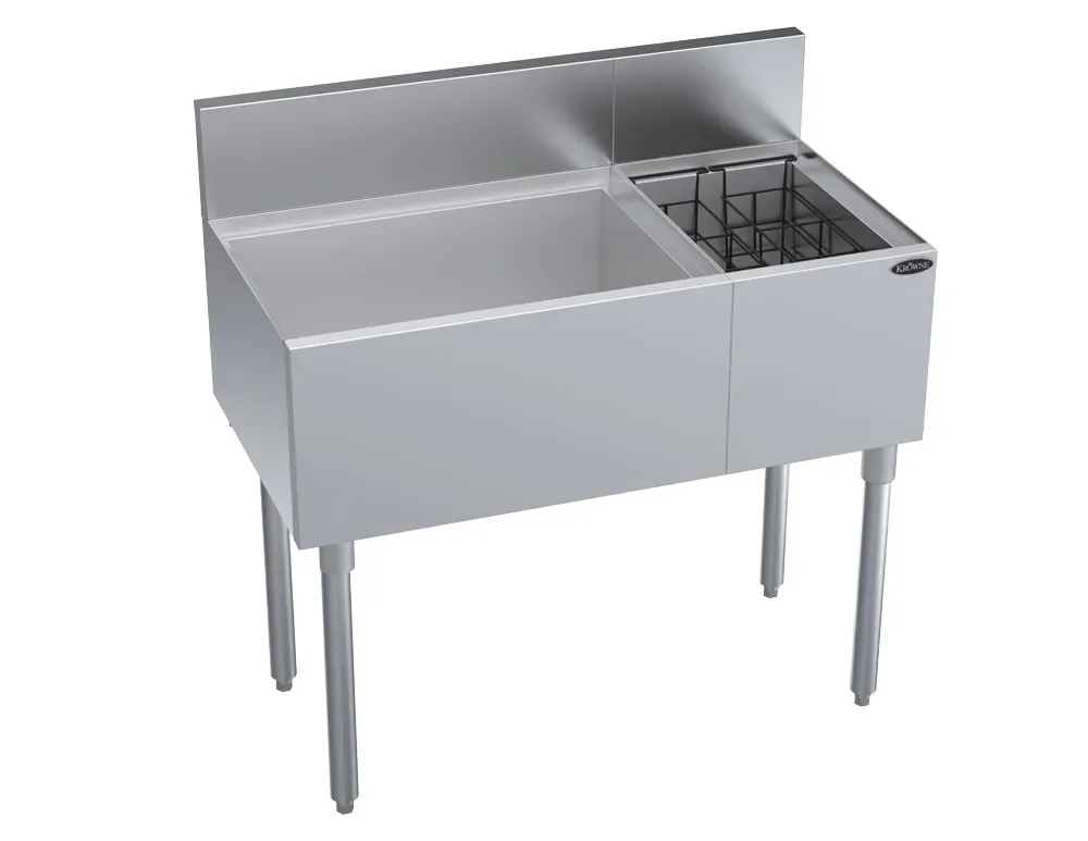 Master the art of cooking with the Krowne Metal KR19-M36L Ice Bin. This Royal Series 36" Ice Bin/Insulated Bottle Storage Multi Station is a must-have for any commercial restaurant. With its spacious 36"W x 19"D underbar design, it provides ample storage for ice and bottles, ensuring that your drinks are always chilled and ready to serve. The insulated bottle section keeps your beverages at the perfect temperature, while the ice bin allows for easy access and efficient ice production. Whether you're running a busy bar or a bustling restaurant, the Krowne Metal KR19-M36L Ice Bin is the perfect addition to your establishment, making it easier than ever to serve refreshing drinks to your customers.