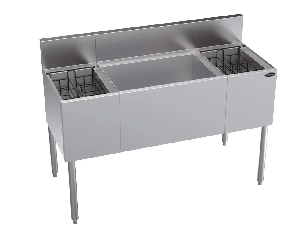 Streamline your restaurant cooking operations with the Krowne Metal, KR19-M48C-10, Underbar. This versatile underbar unit is designed to enhance efficiency and organization in your commercial kitchen. With its spacious 48"W x 19"D multi-station layout, it offers ample space for various tasks. The unit features two 12" insulated bottle sections, allowing you to keep your beverages at the perfect temperature for serving. Additionally, it includes a 24" ice bin with a cold plate, ensuring that your ice stays cold and ready for use. Whether you need a convenient space for mixing drinks or a dedicated area for storing bottles, this underbar unit is a must-have for any commercial restaurant.
