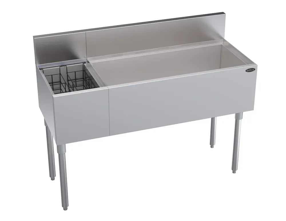Introducing the Krowne Metal, KR19-M48R-10, Underbar - the perfect addition to drive restaurant profitability. This multi-station underbar unit is designed to optimize efficiency and functionality in a commercial restaurant setting. With its 48" width and 19" depth, it provides ample space for various tasks. The unit includes a 12" insulated bottle section, ensuring that beverages stay at the perfect temperature for serving. Additionally, it features a 36" ice bin with a cold plate, allowing for quick and efficient ice production. Whether you need to store bottles, prepare drinks, or keep ice readily available, this underbar unit is a must-have for any commercial restaurant. Invest in this high-quality product and watch your restaurant's profitability soar.
