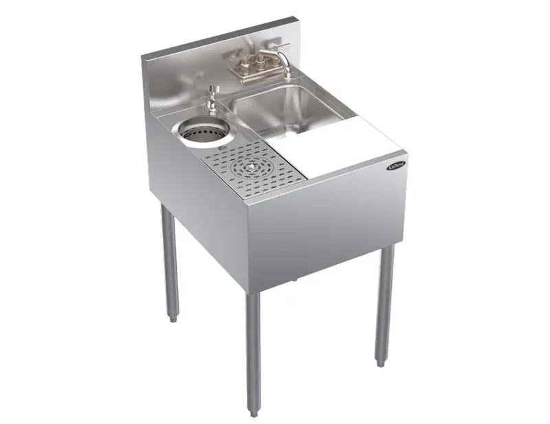 Kitchen innovation at its best, the Krowne Metal KR24-MS20 Sink is a must-have for any commercial restaurant. This underbar speed unit is designed to optimize efficiency and functionality in a busy kitchen. With its 20"W x 24"D size, it provides ample space for food preparation and cleaning tasks. The unit includes a dump sink, speed rinser, dipperwell, and cutting board, making it a versatile addition to any kitchen setup. The speed rinser allows for quick and efficient rinsing of glasses and utensils, while the dipperwell is perfect for keeping ice cream scoops and other utensils clean and easily accessible. The cutting board provides a convenient surface for slicing and dicing ingredients. Made by Krowne Metal, a trusted name in the industry, this sink is built to last and withstand the demands of a commercial restaurant. Upgrade your kitchen with the Krowne Metal KR24-MS20 Sink and experience the difference in efficiency and productivity.