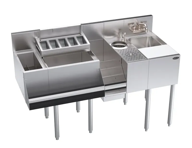 Enhance your commercial kitchen with the Krowne Metal KR24-MX54-7 Mixology Station. This 54" single craft cocktail workstation is designed to meet the demands of a busy restaurant or bar. With its 7-circuit cold plate, you can easily keep your ingredients chilled and ready for mixing. The workstation features a spacious 54"W x 24"D underbar design, providing ample space for bartenders to work efficiently. The mixology station is perfect for creating a wide range of cocktails, from classic favorites to innovative creations. Its durable construction ensures long-lasting performance, even in a fast-paced environment. Whether you're running a small bistro or a bustling nightclub, the Krowne Metal KR24-MX54-7 Mixology Station is a must-have addition to your commercial kitchen.