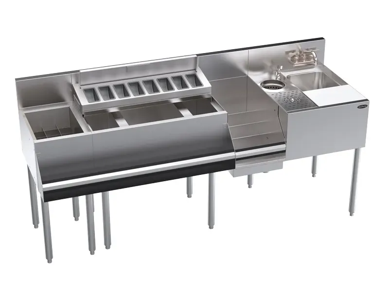 Cook with confidence and flair using the Krowne Metal, KR24-MX68A Underbar. This high-quality workstation is designed to meet the demands of a busy commercial restaurant. With its sleek and durable construction, it is built to withstand the rigors of a fast-paced kitchen environment. The Krowne Metal, KR24-MX68A Underbar features a zero-step design, allowing for seamless workflow and increased efficiency. It does not have a cold plate, making it perfect for establishments that do not require refrigeration at the bar. Whether you're serving up refreshing cocktails or preparing garnishes, this underbar workstation provides the space and functionality you need. Upgrade your bar area with the Krowne Metal, KR24-MX68A Underbar and elevate your restaurant's beverage service to new heights.