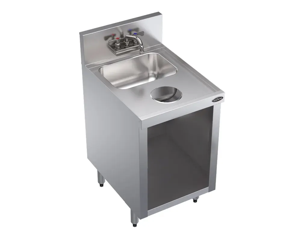 Kitchen innovation at its best, the Krowne Metal KR24-S18C Sink is a must-have for any commercial restaurant. This Royal Series 18" Open Storage Cabinet with Sink and Waste Chute offers convenience and efficiency in one compact unit. With its open storage cabinet, you can easily store and access your kitchen essentials, keeping your workspace organized and clutter-free. The sink and waste chute are designed for easy cleaning and disposal, ensuring a hygienic environment for food preparation. Made by Krowne Metal, a trusted name in the industry, this sink is built to last and withstand the demands of a busy restaurant kitchen. Whether you're washing dishes, rinsing vegetables, or disposing of waste, this sink is designed to streamline your workflow and enhance productivity. Invest in the Krowne Metal KR24-S18C Sink and experience the difference it can make in your commercial kitchen.