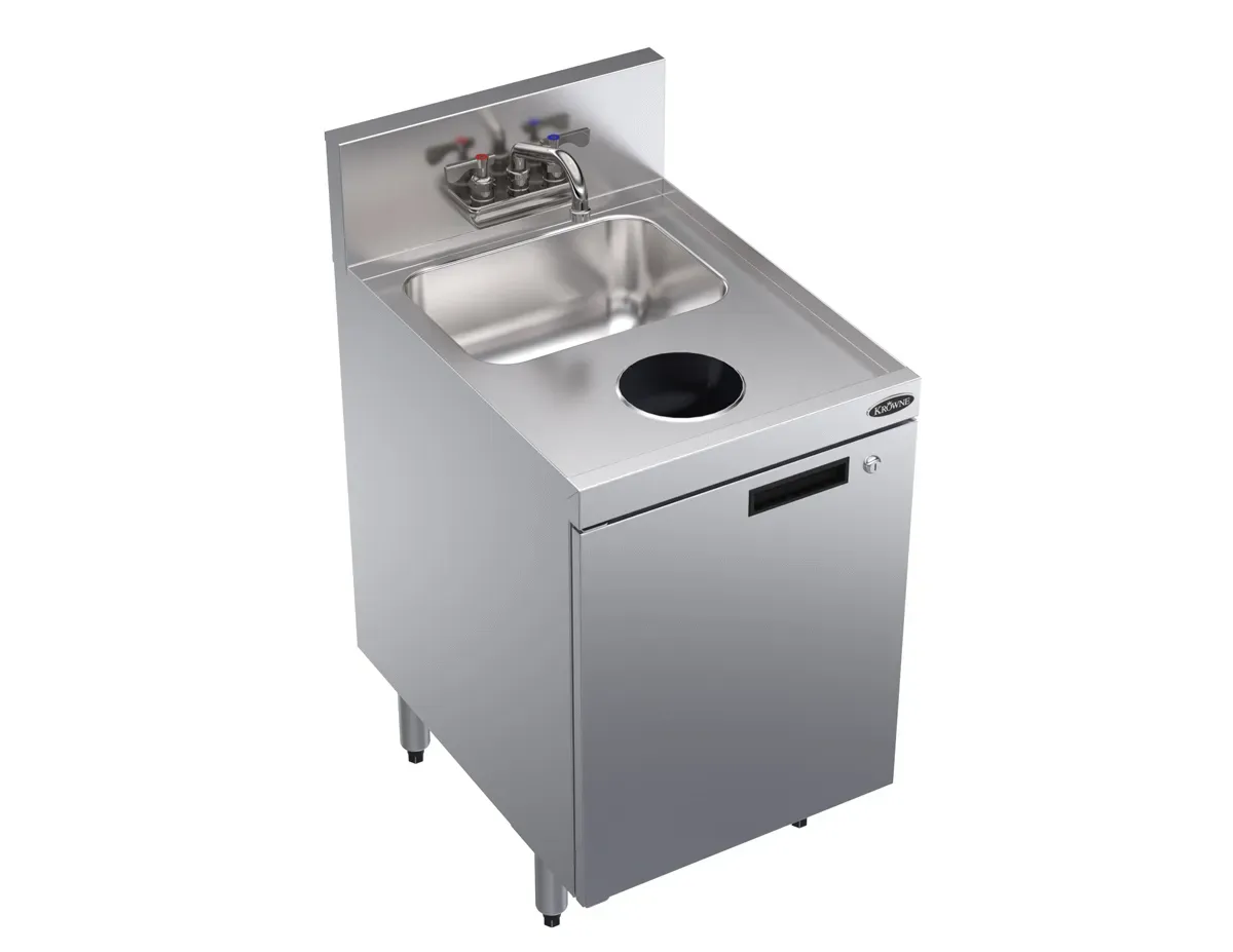 Cook with confidence and flair with the Krowne Metal KR24-SD18C Sink. This Royal Series 18" Storage Cabinet with Sink, Waste Chute, and Door is a must-have for any commercial restaurant. With its sleek design and durable construction, this sink is built to withstand the demands of a busy kitchen. The storage cabinet provides ample space for storing utensils, cleaning supplies, and other essentials, keeping your workspace organized and clutter-free. The waste chute allows for easy disposal of food scraps, making cleanup a breeze. The door adds an extra layer of convenience, allowing you to keep items secure and out of sight. Upgrade your kitchen with the Krowne Metal KR24-SD18C Sink and experience the difference it can make in your restaurant's efficiency and productivity.
