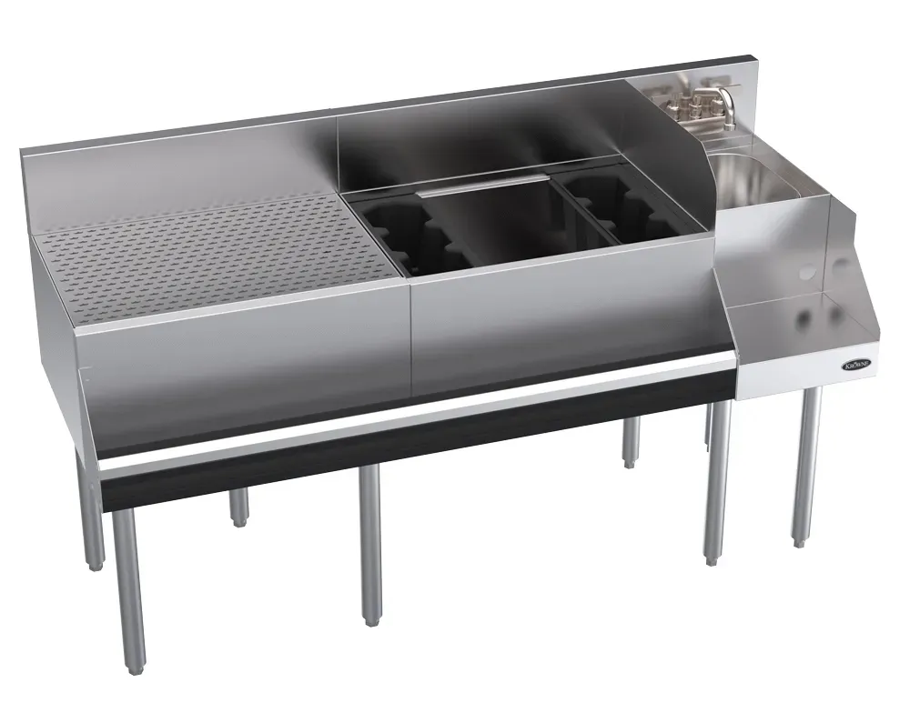 With its 60"W x 24"D size, this underbar workstation provides ample space for food preparation and storage. The built-in drainboard ensures efficient water drainage, while the ice bin keeps your ingredients cool and fresh. The blender workstation is perfect for creating delicious drinks and smoothies.