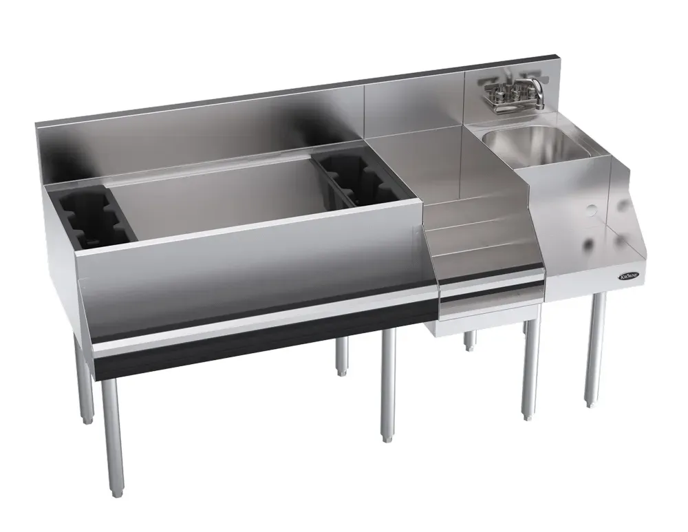 Introducing the Krowne Metal KR24-W60D-10 Workstation, the perfect addition to any commercial restaurant seeking food perfection. This Royal Series 60" Ice Bin/Blender/Liquor Display Workstation with Cold Plate is designed to enhance efficiency and functionality in your establishment. With its 60"W x 24"D dimensions, this underbar workstation provides ample space for preparing drinks and storing ingredients. The included liquor display adds a touch of elegance and allows for easy access to your premium spirits. The 10 circuit cold plate ensures that your beverages stay chilled, even during peak hours. Crafted by Krowne Metal, a trusted name in the industry, this workstation is built to withstand the demands of a busy restaurant environment. Whether you're blending cocktails, serving chilled beverages, or organizing ingredients, the Krowne Metal KR24-W60D-10 Workstation is the ultimate solution for delivering food perfection.