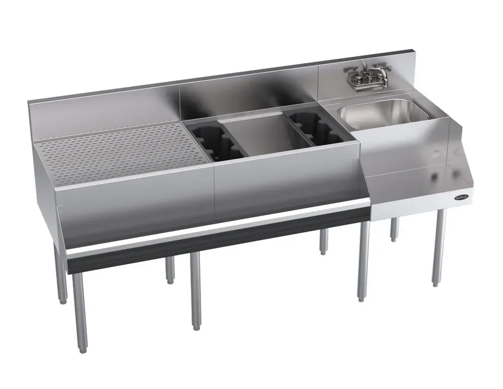 Realize kitchen dreams with the Krowne Metal KR24-W66A-10 Workstation. This Royal Series 66" Drainboard/Ice Bin/Blender Workstation with Cold Plate is the perfect addition to any commercial restaurant. With its spacious 66"W x 24"D design, this workstation provides ample space for food preparation, drink mixing, and storage. The built-in drainboard ensures efficient water drainage, keeping your workspace clean and organized. The ice bin allows for easy access to ice, ensuring that your beverages are always chilled to perfection. The included blender workstation is a game-changer, allowing you to effortlessly create delicious smoothies, cocktails, and more. The cold plate feature keeps ingredients and beverages at the ideal temperature, ensuring customer satisfaction. Upgrade your restaurant's efficiency and functionality with the Krowne Metal KR24-W66A-10 Workstation.