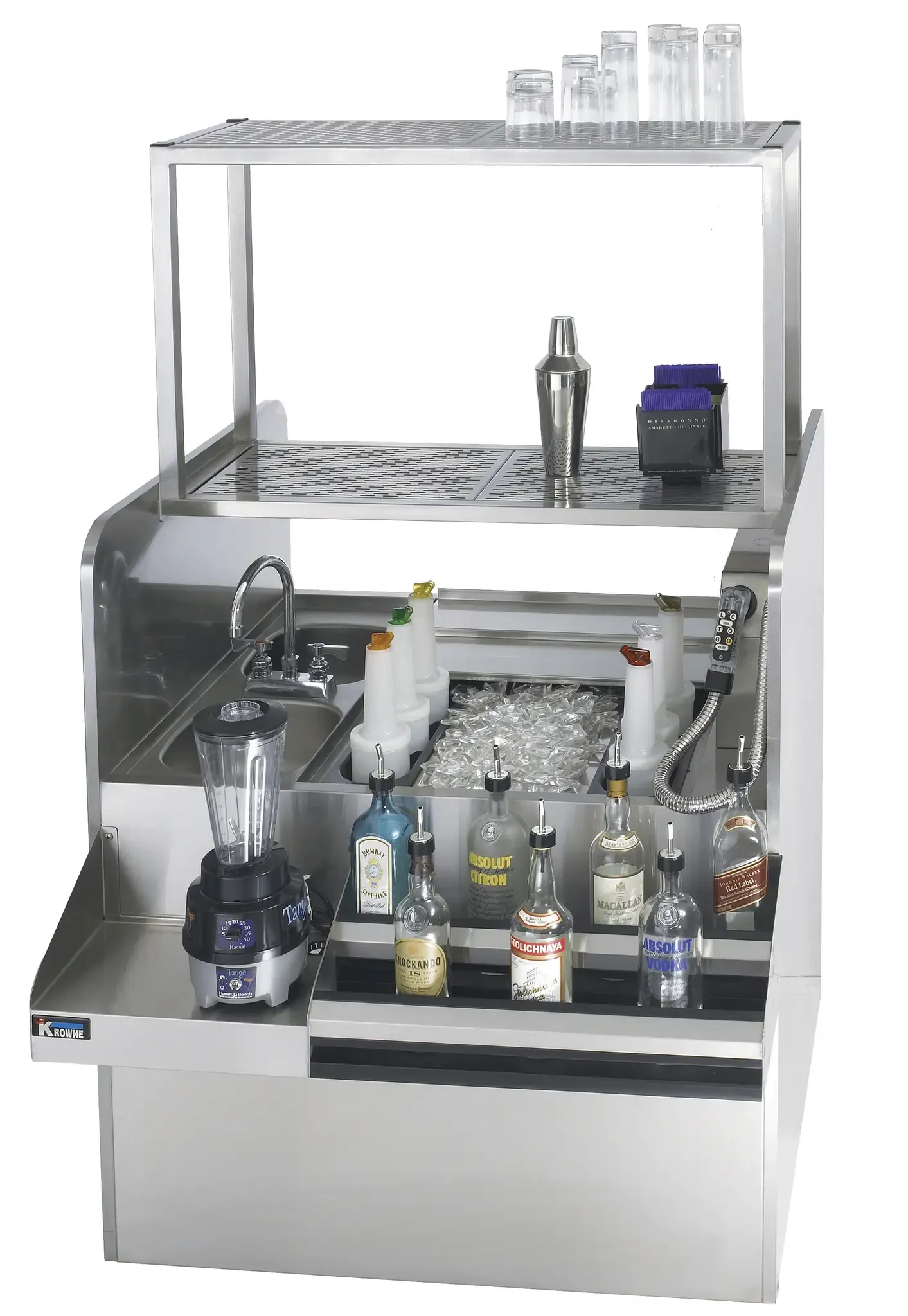 Enhance your commercial kitchen with the Krowne Metal KRPT-42RP-10 Pass Thru Backbar Cooler. This Royal Series workstation is designed to streamline your beverage preparation process, making it perfect for busy commercial restaurants. With its 42" width, this unit provides ample space for a blender, ice bin, and cold plate, allowing you to efficiently create refreshing drinks for your customers. The pass-thru design ensures easy access from both sides, making it convenient for bartenders to serve drinks quickly. The two dump sinks are ideal for rinsing glasses and utensils, promoting cleanliness and hygiene in your establishment. The ice bin on the right side keeps ice readily available, ensuring that your drinks are always chilled to perfection. Made by Krowne Metal, a trusted name in the industry, this pass-thru backbar cooler is built to withstand the demands of a commercial kitchen. Upgrade your beverage station with the KRPT-42RP-10 and provide your customers with exceptional service.