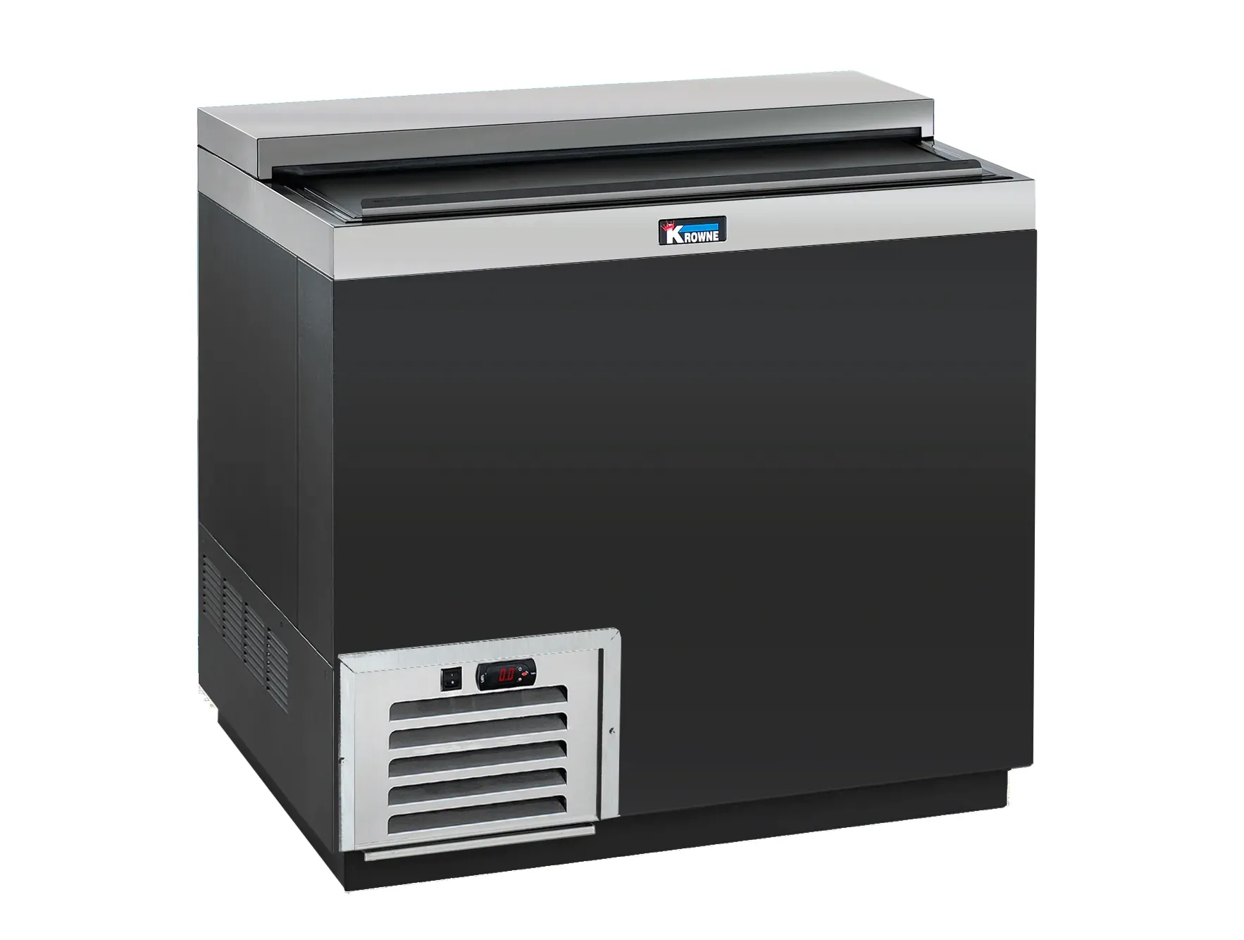 Introducing the Krowne Metal MC36B Mug Froster, a must-have for any commercial restaurant looking to drive profitability. This Royal Series 36" Black Vinyl Slide Top Mug Froster is designed to keep your mugs frosty and your customers satisfied. With its self-contained refrigeration system and a temperature range of -5 to 5F, you can ensure that your mugs are always chilled to perfection. The digital thermostat allows for precise temperature control, while the sliding door on top provides easy access to your mugs. The interior floor rack and two layers of shelves offer ample storage space, and the automatic defrost timer and condensate evaporator make maintenance a breeze. Made with a stainless interior and top, and a black vinyl clad exterior front and sides, this mug froster is not only functional but also visually appealing. Powered by a 1/3 HP motor, this froster operates at 115v/60/1-ph with 5.3 amps. Trust Krowne Metal to deliver high-quality, reliable equipment for your restaurant needs.