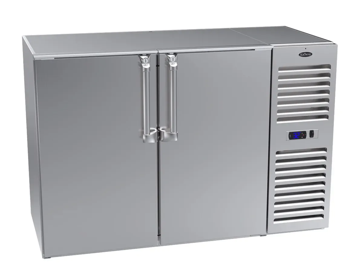 Invest in superior quality with the Krowne Metal NS52R-SNS-RL Refrigeration- Self-Contained Narrow Door Back Bar. This top-of-the-line back bar cooler is a must-have for any commercial restaurant. With its narrow door design and stainless steel construction, it offers both functionality and durability. The self-contained unit ensures efficient cooling, keeping your beverages at the perfect temperature for your customers. The 52" size provides ample storage space for a wide variety of drinks, allowing you to offer a diverse selection to your patrons. Whether you're running a busy bar or a bustling restaurant, this back bar cooler is designed to meet your needs. Upgrade your establishment with the Krowne Metal NS52R-SNS-RL Refrigeration- Self-Contained Narrow Door Back Bar and provide your customers with the best beverage experience possible.