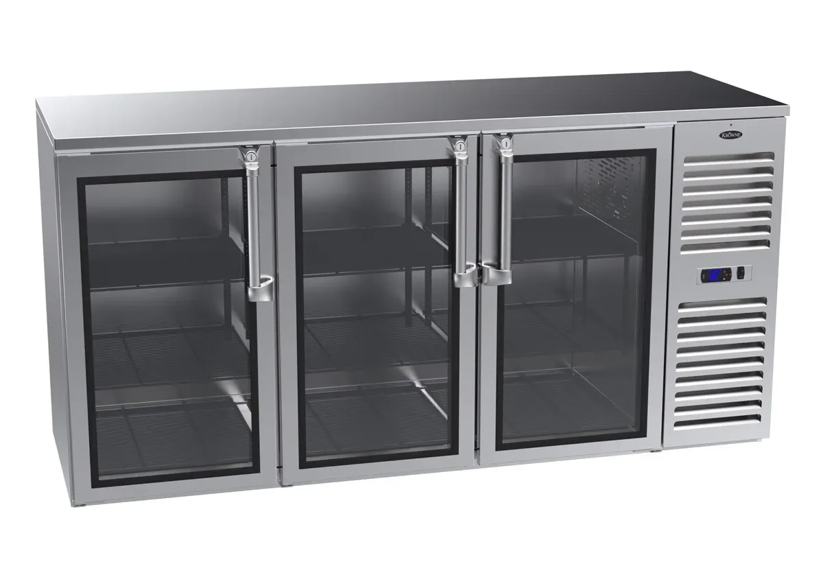 Fuel your restaurant's success with the Krowne Metal NS72R-KSS-RRR Refrigeration- Self-Contained Narrow Door Back Bar. This top-of-the-line back bar cooler is designed to meet the demands of a busy commercial restaurant. With its 72" width and narrow door design, it maximizes storage space while minimizing the footprint. The three right stainless steel glass doors not only provide easy access to beverages but also add a touch of elegance to your establishment. The stainless steel top ensures durability and easy cleaning, making it perfect for a fast-paced environment. Whether you're running a bar, restaurant, or nightclub, the Krowne Metal NS72R-KSS-RRR Refrigeration- Self-Contained Narrow Door Back Bar is the ideal choice to keep your drinks chilled and your customers satisfied.