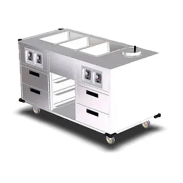 Modernize operations with the Lakeside Manufacturing 6750 Serving Counter. This electric hot food station is a smart choice for commercial restaurants looking to enhance efficiency and functionality. With its sleek design and high-quality construction, this serving counter is built to withstand the demands of a busy kitchen. The unit features three dry heat wells, perfect for keeping food at the ideal temperature. It also includes a heated soup well and two eutectic chilled drawers, allowing for versatile food storage options. The Lakeside Manufacturing 6750 Serving Counter is equipped with independent temperature controls, ensuring precise heat regulation for each compartment. Additionally, it offers ample storage space with two dry storage drawers and an open compartment with adjustable universal ledges. With its UL EPH Classified certification and made in the USA label, this serving counter guarantees both safety and authenticity. Upgrade your restaurant's operations with this top-of-the-line serving counter.