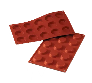 Upgrade Your Kitchen Operations with the Louis Tellier SF013 Baking Sheet and Pastry Mold. This high-quality, flexible mold is designed to enhance your baking experience in a commercial restaurant setting. Made with high-conductivity alimentary pure silicone, this mold ensures even heat distribution for perfectly baked mini-tartlets. With 15 sections measuring 0.39"H x 1.77" in diameter, you can create multiple delicious treats at once. The non-toxic and non-stick properties of the mold make it easy to release your creations without any hassle. The 7" x 11-3/4" overall dimensions provide ample space for baking large quantities. Upgrade your baking game and impress your customers with the Louis Tellier SF013 Baking Sheet and Pastry Mold.