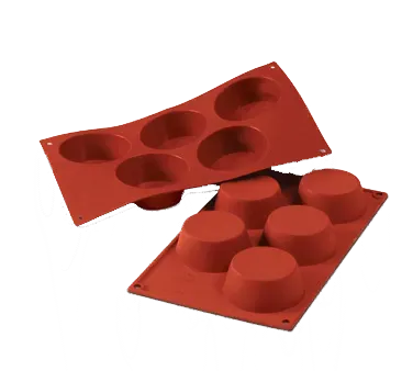 Transform Your Kitchen Workflow with the Louis Tellier SF024 Baking Sheet, Pastry Mold, Flexible. This high-quality mold is designed to streamline your baking process in a commercial restaurant setting. Made with high-conductivity alimentary pure silicone, this mold ensures even heat distribution for perfectly baked goods every time. The non-toxic and non-stick properties make it easy to remove your creations without any hassle or mess. With five large muffin sections, measuring 1.37"H x 3.18" in diameter, you can create delicious treats in no time. The 7" x 11-3/4" overall dimensions provide ample space for multiple batches, increasing your productivity. Upgrade your baking game and elevate your culinary creations with the Louis Tellier SF024 Baking Sheet, Pastry Mold, Flexible.