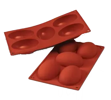Elevate Your Restaurant's Culinary Game with the Louis Tellier SF041 Baking Sheet and Pastry Mold. This high-quality, flexible mold is designed to meet the demands of a commercial restaurant kitchen. Made with high-conductivity alimentary pure silicone, it ensures even heat distribution for perfectly baked pastries every time. The non-toxic and non-stick properties of the mold make it easy to release your creations without any hassle. With five 1.41"H x 2.86" dia. sections, you can create half-egg shaped pastries that are sure to impress your customers. The 7" x 11-3/4" overall dimensions provide ample space for multiple pastries, allowing you to increase your production efficiency.