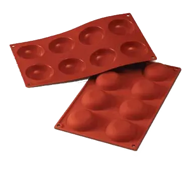 Introducing the Louis Tellier SF053 Baking Sheet, Pastry Mold, Flexible. Master Your Commercial Kitchen with this high-quality, versatile tool. Crafted by Louis Tellier, a trusted name in the industry, this mold is perfect for creating delectable krapfen pastries. With (8) 0.79"H x 2.26" dia. sections, you can effortlessly make multiple pastries at once, saving time and increasing efficiency in your restaurant. The mold is made of high-conductivity alimentary pure silicone, ensuring even heat distribution for perfectly baked pastries every time. Its non-toxic and non-stick properties make it easy to release the pastries without any mess or hassle. This flexible pastry mold is designed to withstand the demands of a commercial kitchen, making it a must-have for any professional chef or baker. Elevate your culinary creations with the Louis Tellier SF053 Baking Sheet, Pastry Mold, Flexible.