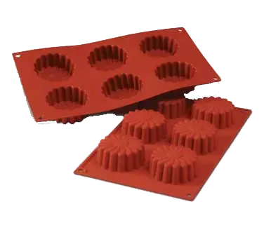 Efficiency Meets Culinary Mastery with the Louis Tellier SF056 Baking Sheet and Pastry Mold. This high-quality, flexible mold is designed to meet the demands of commercial restaurant use. Crafted with high-conductivity alimentary pure silicone, it ensures even heat distribution for perfectly baked pastries every time. The non-toxic and non-stick properties make it easy to remove delicate pastries without any damage. With six 1.10"H x 2.75" dia. sections, this mold allows for consistent portion sizes, ideal for creating uniform pastries for your customers. The 7" x 11-3/4" overall dimensions provide ample space for multiple pastries, maximizing productivity in a busy kitchen.
