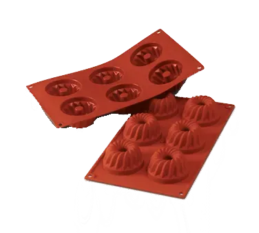 Efficiency Meets Culinary Mastery with the Louis Tellier SF058 Baking Sheet and Pastry Mold. This high-quality mold is perfect for commercial restaurant use, allowing chefs to create delectable kougloff pastries with ease. The mold features six sections, each measuring 1.42 inches in height and 2.75 inches in diameter, providing consistent and uniform results every time. Made from high-conductivity alimentary pure silicone, this mold ensures even heat distribution for perfectly baked pastries. Its non-toxic and non-stick properties make it easy to release the pastries without any hassle. The 7" x 11-3/4" overall dimensions offer ample space for multiple pastries, increasing productivity in a busy kitchen.