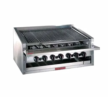Master the art of cooking with the Magikitchn APM-RMB-660CR Gas Countertop Charbroiler. This high-quality charbroiler is designed to meet the demands of a commercial restaurant kitchen. With a 60" wide cooking surface and a 13" high free-floating round rod top grate, you'll have plenty of space to cook a variety of dishes. The EZ tilt to front grease trough ensures easy cleanup, while the cast iron radiants provide even heat distribution for perfect results every time. Made with stainless steel on all sides, this charbroiler is built to withstand the rigors of a busy kitchen. It also features a 6" service shelf and a top grid scraper for added convenience. Whether you're grilling steaks, burgers, or vegetables, the Magikitchn APM-RMB-660CR Gas Countertop Charbroiler is the perfect addition to your restaurant kitchen.