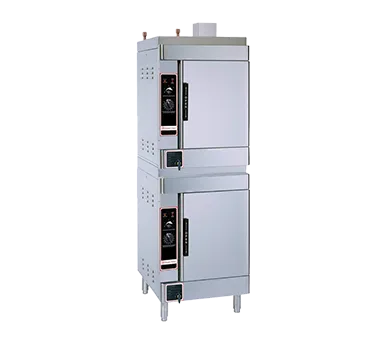 Achieve culinary precision with the Market Forge SIRIUS II-12 Convection Steamer. This gas-powered floor model is designed for commercial restaurant use, offering two compartments with a capacity of six 12" x 20" pans each. The boilerless system operates on LP or natural gas, providing efficient and reliable performance. With an automatic water system and manual controls, this steamer ensures consistent results every time. The aluminum cast cooking compartment and stainless steel exterior guarantee durability and easy cleaning. The preheated incoming water and clean water reservoir system contribute to a hygienic cooking environment. Equipped with 6-9" legs, this steamer is easy to move and position. With a powerful 52000BTU output and two 120V/60/1-PH connections, it meets the highest standards of energy efficiency. Trust Market Forge for a steamer that delivers exceptional quality and performance in your commercial kitchen.