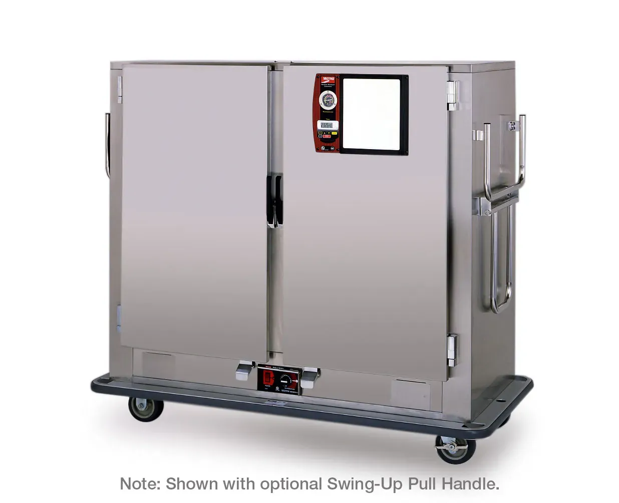 Maximize efficiency seamlessly with Metro's MBQ-150DXA Food Holding & Transport/Banquet Cabinets. Engineered to withstand heavy-duty use and abuse, these heated banquet cabinets offer one-of-a-kind tools to improve your restaurant operation. With a capacity to hold up to 150 covered plates with an 11.75-inch diameter or 120 covered plates with a 12.75-inch diameter, these cabinets ensure that your food stays at the perfect temperature until it's ready to be served. The cabinets also accommodate full-size sheet pans, allowing for versatile food storage. Equipped with a 220V, 1650W, 7.5A, 50/60Hz heating system, these cabinets provide precise temperature control. The NEMA 6-15P plug ensures easy installation. Whether you're catering a large event or running a busy restaurant, Metro's MBQ-150DXA cabinets are the ideal solution for keeping your food hot and delicious.