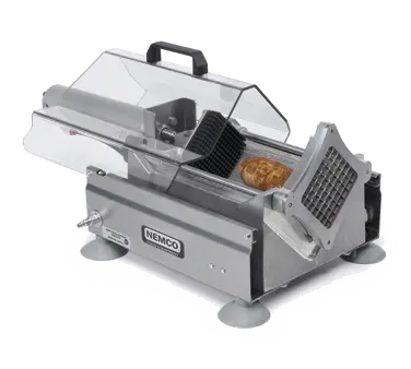 Maximize Restaurant Productivity with the Nemco, 56455-1, French Fry Cutter. This Monster Airmatic FryKutter is designed to cut extra large potatoes with ease, making it perfect for high-volume commercial restaurant use. With a 1/4" cut size and a pneumatic air cylinder with built-in air-piloted cushions, this fry cutter can effortlessly slice through 720 potatoes per hour, saving you valuable time and labor. Not only can it handle potatoes, but it can also cut soft vegetables, expanding its versatility in the kitchen. The clear polycarbonate guard ensures safety while the cast aluminum and stainless steel construction guarantees durability. The suction cup feet provide stability during operation, and it is NSF certified for added peace of mind. Made in the USA by Nemco, this fry cutter is a reliable and authentic choice for any restaurant looking to enhance efficiency and deliver consistent, perfectly cut fries every time.