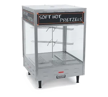 Introducing the Nemco 6453 Display Case, Hot Food, Countertop a must-have for commercial restaurants seeking optimal operation. Crafted with stainless steel construction and a tempered glass case, this pretzel merchandiser is designed to showcase your delectable treats while keeping them fresh and enticing. The revolving feature allows for easy access and maximum visibility, while the illuminated interior ensures your products are beautifully displayed. With a water reservoir and thermostat control up to 200°F, you can maintain the perfect temperature for your hot food items. Powered by 1480 watts and 12.3 amps, this NSF-certified unit is built to withstand the demands of a busy restaurant environment. Elevate your food presentation and drive customer satisfaction with the Nemco 6453 Display Case, Hot Food, Countertop.
