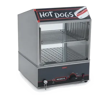 Revolutionize your restaurant setup with the Nemco, 8300-220 Hot Dog Steamer. This counter top steamer is designed to meet the demands of a busy commercial restaurant. With its over-and-under hot dog steamer and bun warmer, it can hold approximately 150 hot dogs and 30 buns, ensuring that you can serve a large number of customers without any hassle. The tempered glass back panel and front sliding doors not only provide easy access to the hot dogs and buns but also add a touch of elegance to your restaurant's ambiance. Made with a stainless steel cabinet and base, this steamer is durable and easy to clean. Its 220v/60/1ph power supply, 800 watts, and 3.6 amps ensure efficient and reliable performance. Trust Nemco, a renowned vendor in the industry, to deliver a high-quality product that will enhance your restaurant's efficiency and customer satisfaction.