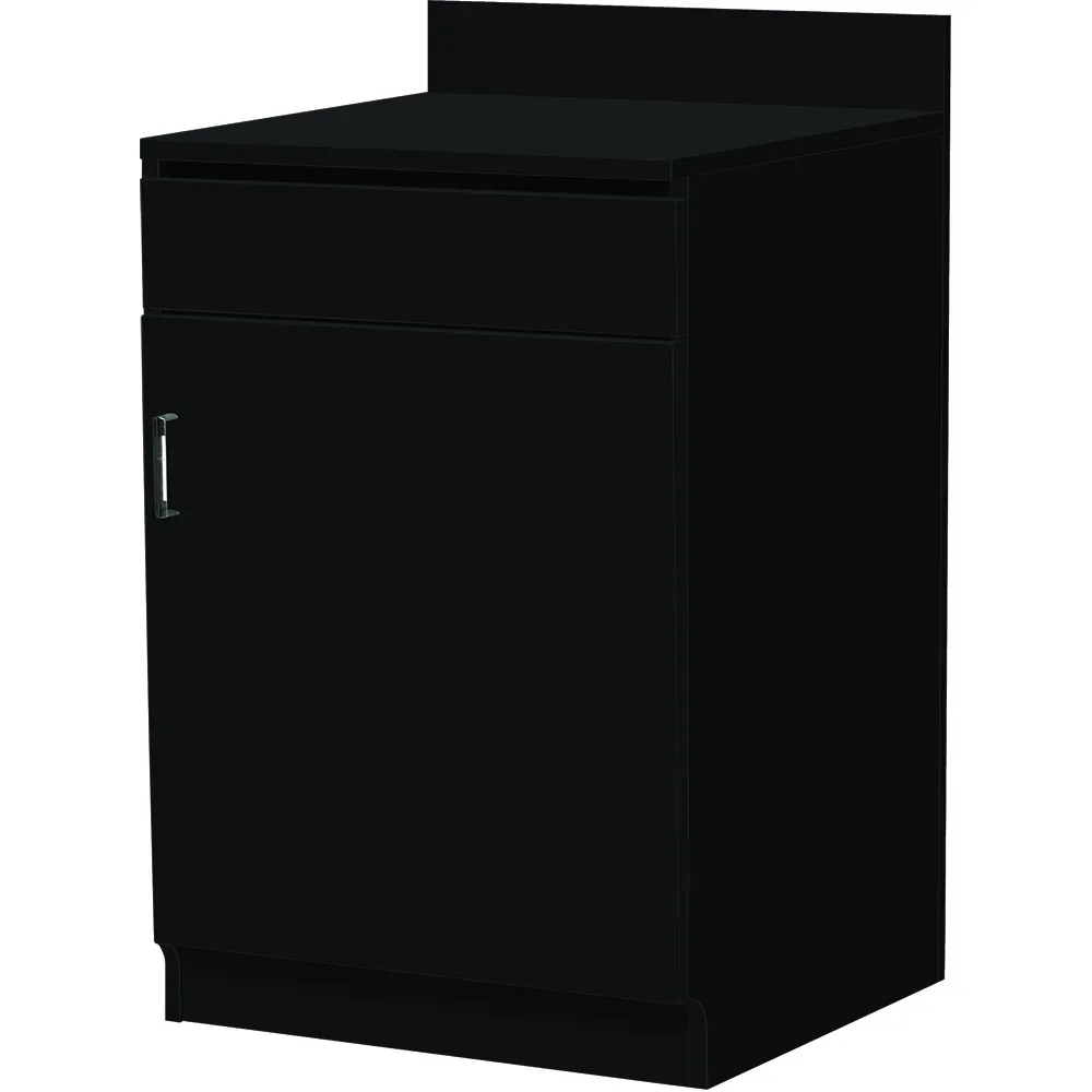 Furnish your eatery for success with the Oak Street M8210-BLK-ASSEMBLED Wait Station Cabinet. This sleek and functional cabinet is designed specifically for commercial restaurant use, offering a convenient and organized workspace for your waitstaff. With a 24"L x 24-1/4"W x 39-1/4"H work surface, it provides ample space for order-taking, bill processing, and more. The cabinet features a 4" backsplash to prevent spills and stains, ensuring a clean and professional appearance. It includes one drawer and one door for storing menus, utensils, and other essentials, while the adjustable shelf allows for customizable storage options. Made of durable melamine with a black finish, this cabinet is built to withstand the demands of a busy restaurant environment. Plus, it comes fully assembled for immediate use. Upgrade your restaurant's efficiency and aesthetics with the Oak Street Wait Station Cabinet.