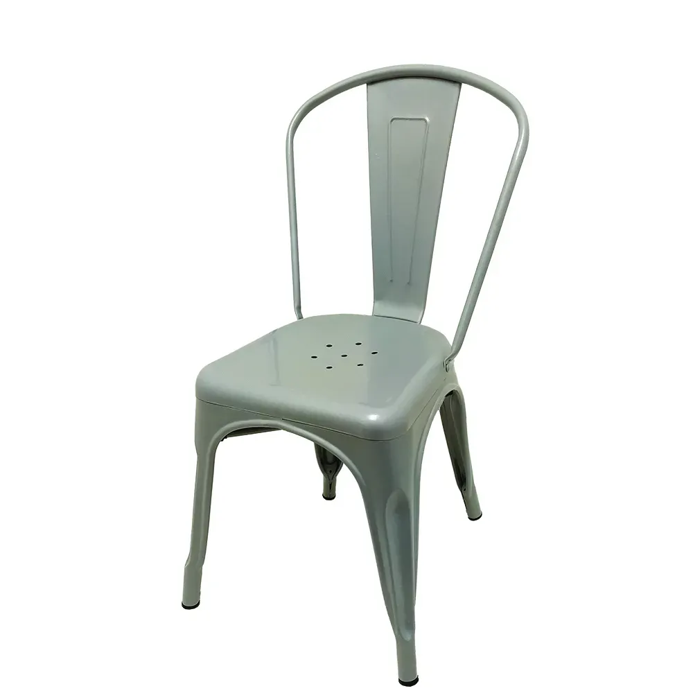 Invest in an exceptional set with the Oak Street OD-CM-0001-SLV Chair. Designed for commercial restaurant use, this stacking outdoor chair combines style and durability to enhance your dining space. The chair features a smokestack design with a metal back and seat, providing both comfort and support for your guests. The tolix style metal frame adds a touch of modern elegance, while the silver paint finish adds a sleek and polished look. With non-marring poly glides, this chair is suitable for both indoor and outdoor use, allowing you to easily transition between your indoor dining area and outdoor patio. Elevate your restaurant's ambiance with the Oak Street OD-CM-0001-SLV Chair.