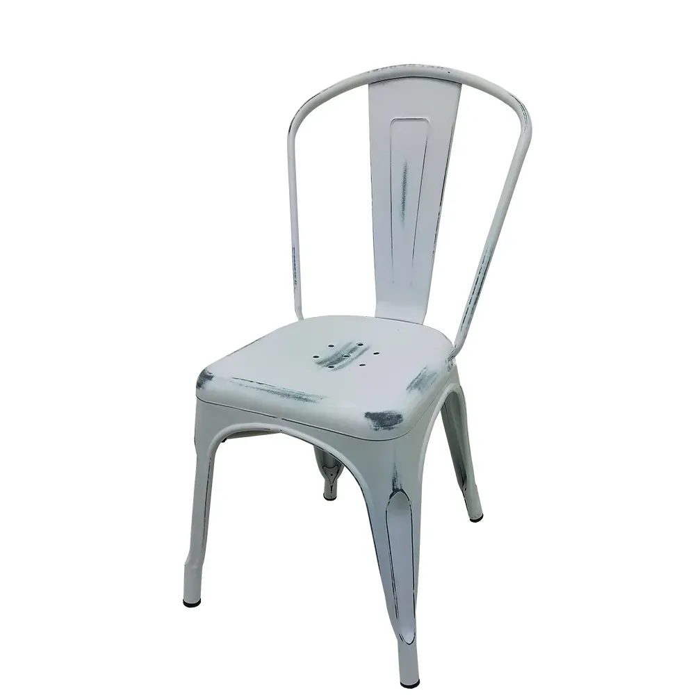 Transform Your Venue with Quality Decor! The Oak Street OD-CM-0001-WHT Chair is the perfect addition to any commercial restaurant. With its sleek and modern design, this chair will elevate the ambiance of your establishment. The metal back and seat provide durability and comfort, ensuring that your guests can relax and enjoy their dining experience. The tolix style metal frame adds a touch of sophistication, while the distressed white paint gives it a vintage charm. Whether you're setting up an indoor or outdoor dining area, this chair is versatile and can withstand the elements. The non-marring poly glides protect your floors from scratches, making it ideal for high-traffic areas. With Oak Street's commitment to quality and attention to detail, you can trust that this chair will enhance the overall aesthetic of your restaurant.