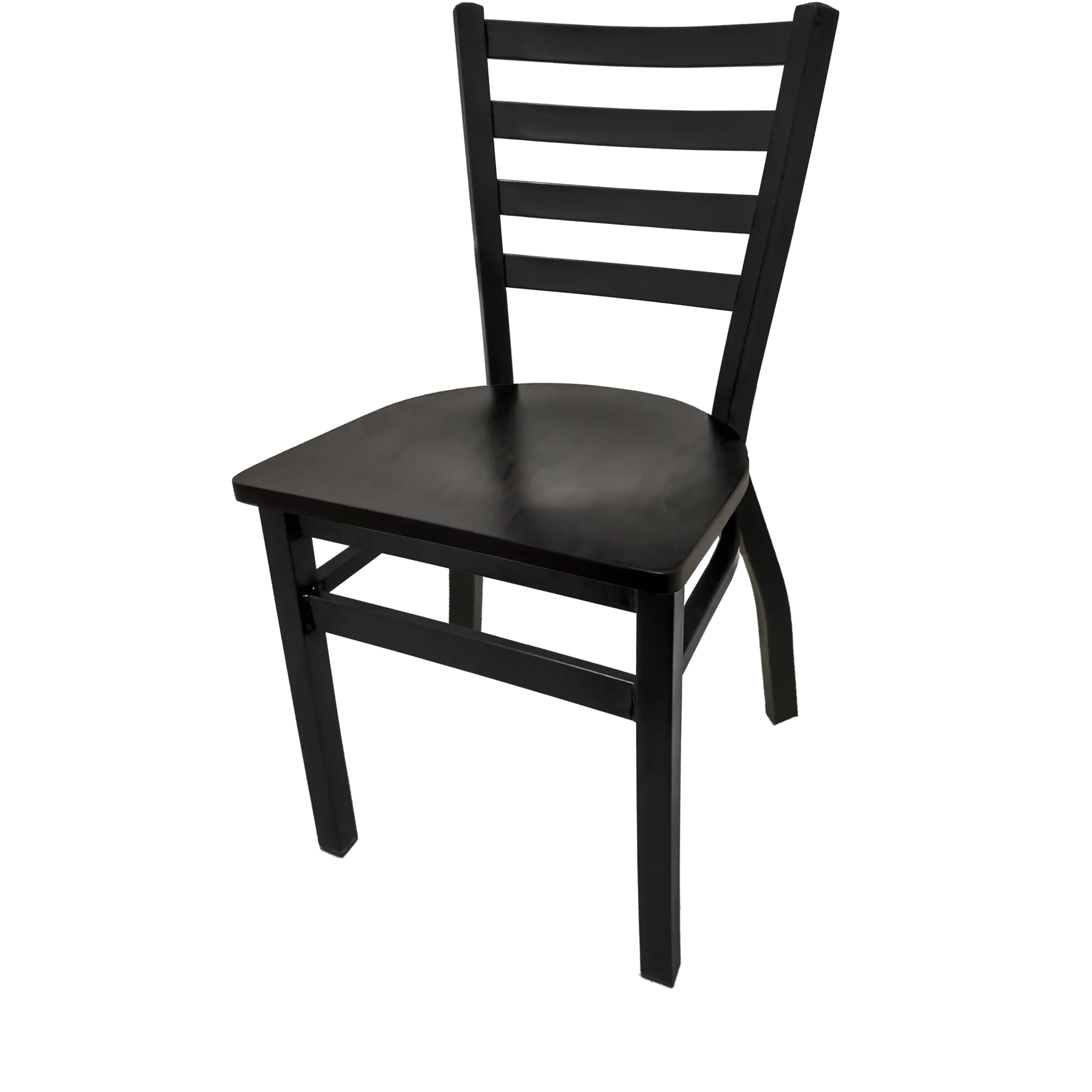 Invest in exceptional seating with the Oak Street ST2160-WB Chair. Designed for commercial restaurant use, this stackable ladderback chair combines style and durability to enhance any dining space. The chair features a black stain wood seat and a premium black powder coat finish, ensuring long-lasting quality. Its 1.2mm steel frame and 1-1/4" tubing provide robust support, while the 100% welded frame and footring add stability. With two leg supports and non-marring glides, this chair is built to withstand the demands of a busy restaurant environment. The seat ships unattached from the frame, but simple attachment is required. With a maximum stacking height of 5 chairs, this chair is easy to store when not in use. Elevate your restaurant's ambiance and comfort with the Oak Street ST2160-WB Chair.