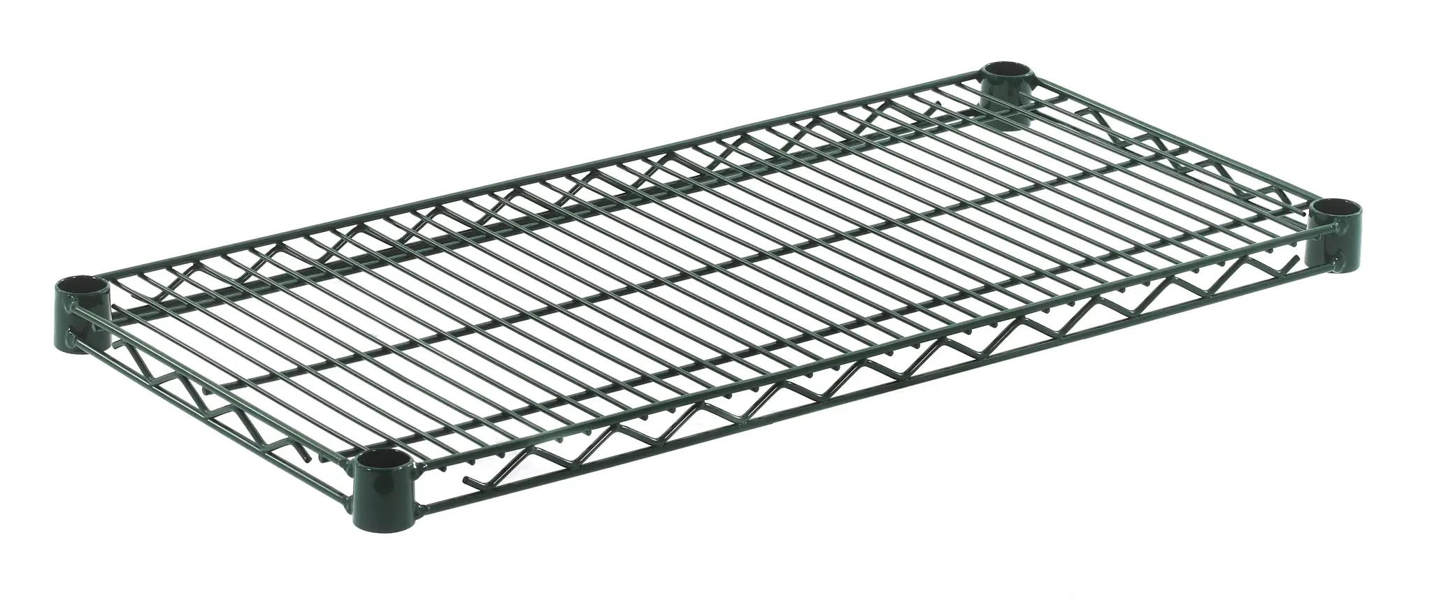 Streamline effectiveness with the Olympic J1430K Wire Shelf. Designed specifically for commercial restaurant use, this green epoxy-coated shelf is a must-have for any foodservice establishment. With its generous dimensions of 14" x 30", this wire shelf provides ample space for storing and organizing kitchen essentials, such as pots, pans, and ingredients. The sturdy construction ensures durability and long-lasting performance, even in busy restaurant environments. The green epoxy coating not only adds a touch of style but also provides protection against rust and corrosion, making it ideal for use in high-moisture areas. Enhance the efficiency of your commercial kitchen with the Olympic J1430K Wire Shelf and experience the convenience and reliability it brings to your restaurant operations.