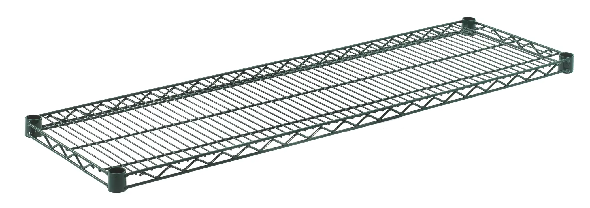 Improve adaptability with the Olympic J1448K Wire Shelf. This versatile shelving unit is designed to meet the unique needs of commercial restaurants. With its green epoxy finish and durable construction, it offers both style and functionality. The 14" x 48" size provides ample space for storing ingredients, cookware, and other essential items, helping to keep your kitchen organized and efficient. The wire design allows for proper air circulation, preventing the buildup of dust and ensuring food stays fresh. Whether you need to display freshly baked goods or store bulk supplies, this Olympic wire shelf is up to the task. Upgrade your restaurant's storage capabilities with the Olympic J1448K Wire Shelf and experience the difference it can make in your daily operations.