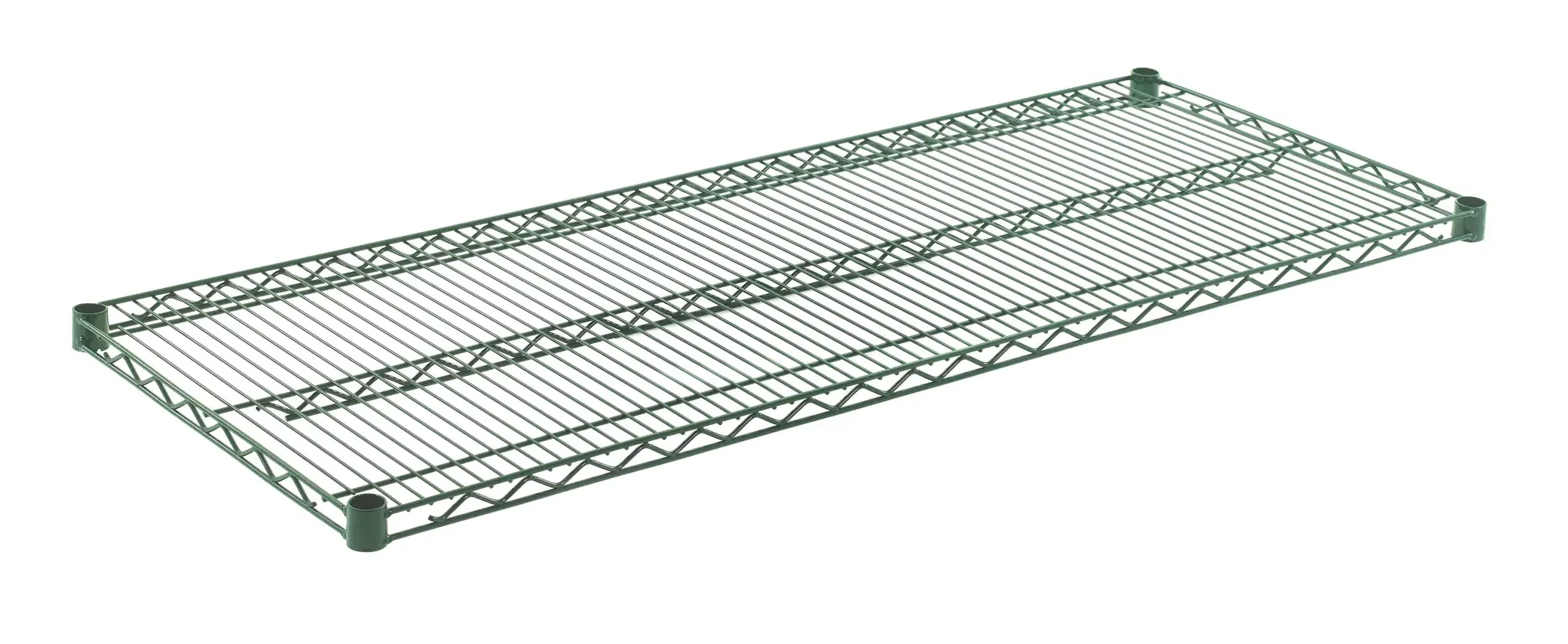 Enhance dynamics with the Olympic J2154K Wire Shelf. Designed specifically for commercial restaurant use, this wire shelf is a must-have for any food establishment. With its green epoxy coating, it not only adds a pop of color to your kitchen but also provides superior durability and resistance to corrosion. Measuring 21" x 54", this shelf offers ample space for storing ingredients, cookware, and other essential items, helping you keep your kitchen organized and efficient. Whether you're running a bustling restaurant or a small cafe, this wire shelf is a reliable and practical solution for optimizing your storage space. Invest in the Olympic J2154K Wire Shelf and take your restaurant's efficiency to new heights.
