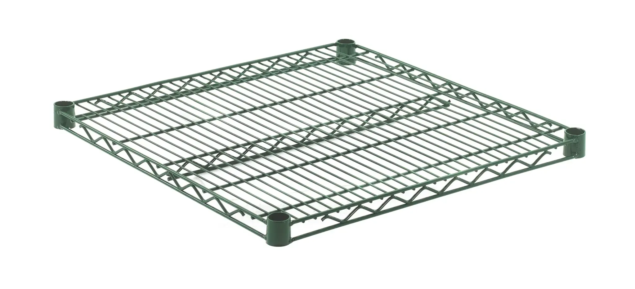 Optimize dynamics with Olympic's J2424K Wire Shelf, designed specifically for commercial restaurant use. This sturdy and reliable shelf is perfect for organizing and maximizing storage space in any kitchen or pantry. With its green epoxy coating, the shelf not only provides a sleek and professional look but also offers exceptional durability and resistance to corrosion, making it ideal for busy restaurant environments. Measuring 24" x 24", this wire shelf provides ample space for storing ingredients, cookware, and other essential items. Whether you need to organize your walk-in cooler, stockroom, or prep area, this wire shelf is a must-have for any commercial restaurant. Trust Olympic for high-quality shelving solutions that enhance efficiency and functionality in your establishment.