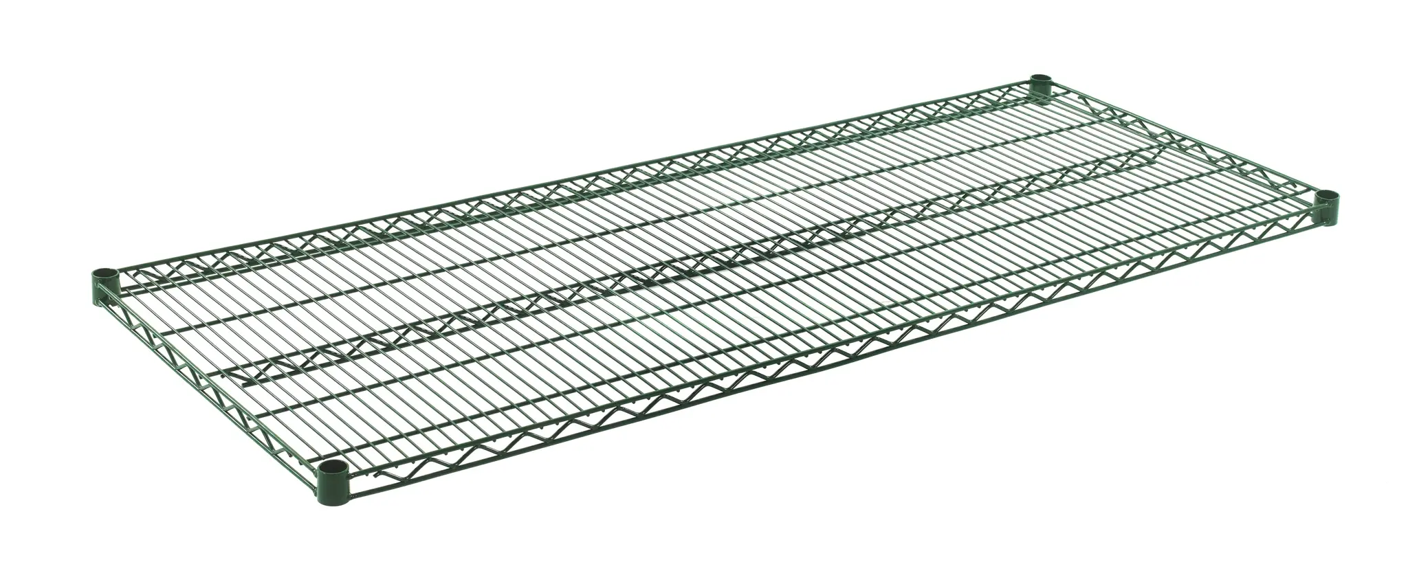 Enhance functionality effortlessly with the Olympic J2460K Wire Shelf. Designed specifically for commercial restaurant use, this wire shelf is a must-have for any foodservice establishment. With its green epoxy coating, this shelf not only adds a pop of color to your kitchen but also provides superior durability and resistance to corrosion. Measuring 24" x 60", it offers ample space for storing ingredients, cookware, and other essential items. Whether you need to organize your pantry, display merchandise, or create additional storage space, this wire shelf is the perfect solution. Don't compromise on functionality and style, choose the Olympic J2460K Wire Shelf for your restaurant today.