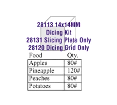 Realize kitchen dreams with the Robot Coupe, 28113W, Food Processor, Disc Plate, Dicing. This top-of-the-line food processor is a game-changer for commercial restaurants. With its powerful motor and expert dicing capabilities, it will revolutionize your food preparation process. The 28113W comes with a 14x14 Dicing Kit Series "D" Expert, allowing you to effortlessly dice vegetables, fruits, and more with precision and speed. Its compact design and durable construction make it perfect for busy restaurant kitchens, where efficiency and reliability are paramount. Whether you're preparing large quantities of ingredients for a busy dinner rush or creating intricate garnishes for a fine dining experience, this food processor has got you covered. Upgrade your kitchen with the Robot Coupe, 28113W, and take your culinary creations to the next level.