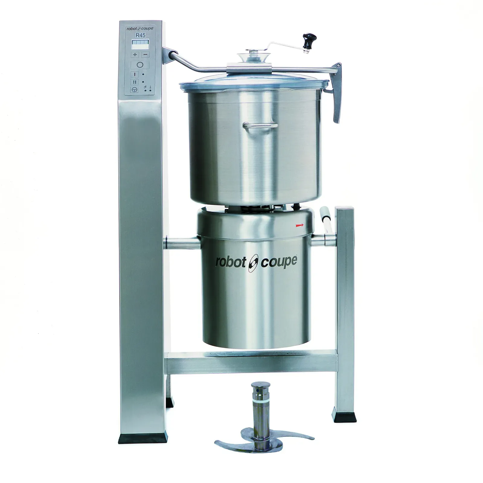Unleash your kitchen's potential with the Robot Coupe BLIXER 45 Food Processor, Floor Model. This powerful and versatile machine is designed to meet the demands of a commercial restaurant kitchen. With a 45-liter capacity, it can handle large quantities of ingredients, making it perfect for high-volume food preparation. The removable and tilting stainless steel cutter bowl allows for easy cleaning and convenient pouring of ingredients. The see-thru polycarbonate lid allows you to monitor the blending or mixing process without interrupting it. The control panel is equipped with a digital timer, ensuring precise and consistent results every time. The BLIXER 45 features a two-speed motor, with speeds of 1800 and 3600 RPM, giving you the flexibility to blend or mix a wide range of ingredients. Made with stainless steel construction, this food processor is built to last in a busy commercial kitchen. With its powerful 13.5 HP motor, the BLIXER 45 can handle even the toughest ingredients with ease. Whether you're blending soups, pureeing sauces, or mixing dough, the Robot Coupe BLIXER 45 Food Processor, Floor Model is the perfect addition to your restaurant kitchen.