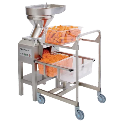 Serve with pride with the Robot Coupe CL60 WORKSTATION Food Processor. This floor model commercial food processor is designed to meet the demands of a busy restaurant kitchen. With its impressive capacity, it can produce up to 3970 pounds of food per hour, ensuring that you can keep up with high-volume orders. The vegetable prep attachment comes with a 16-disc MultiCut pack, allowing you to easily slice, dice, and shred a variety of ingredients. The automatic stainless steel feed-head and pusher feed-head with an integrated cylindrical hopper make it easy to process large quantities of food quickly and efficiently. The ergo mobile cart with a rotating lower shelf and three 1/1 GN containers provides convenient storage and organization. With its powerful 3 HP induction motor and two speeds, this food processor is built to handle the toughest tasks in a commercial kitchen. Invest in the Robot Coupe CL60 WORKSTATION and experience the difference it can make in your restaurant's efficiency and productivity.